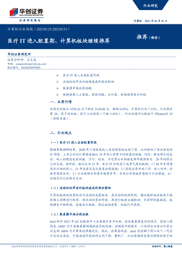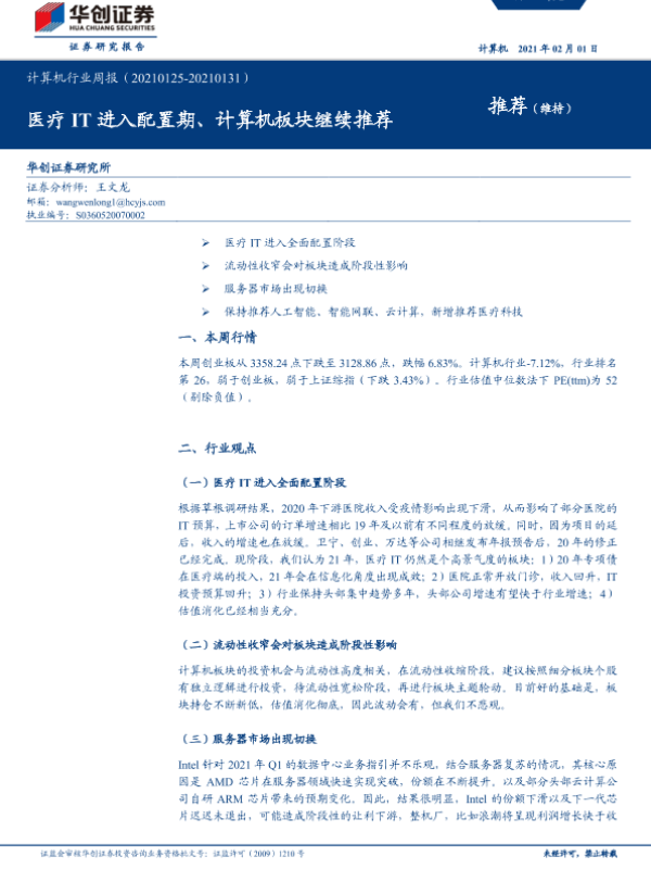 【华创证券】【20210201】计算机行业周报:医疗IT进入配置期、计算机板块继续推荐-5页