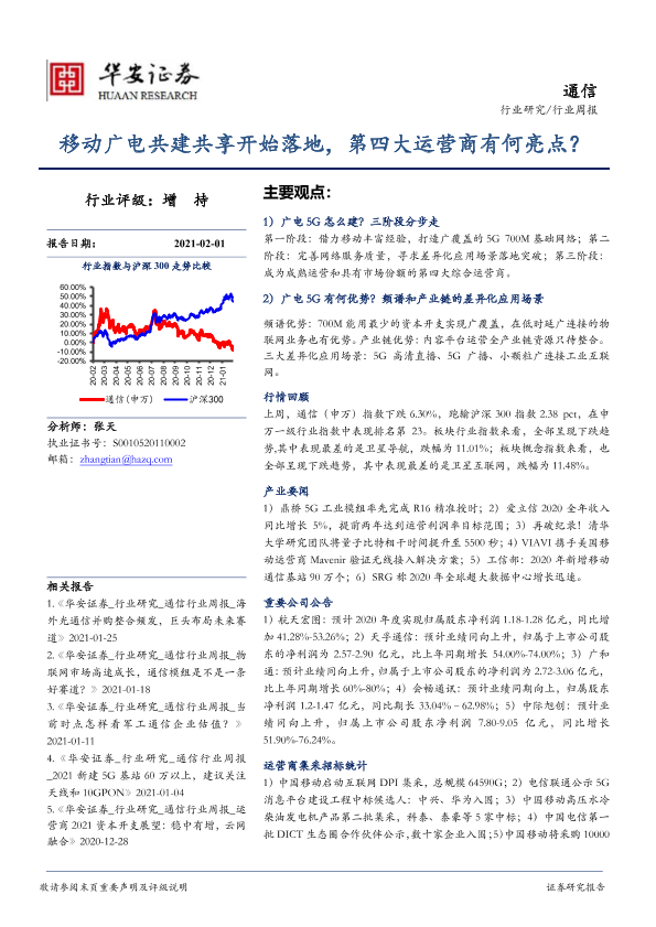 【华安证券】【20210201】20210201-华安证券-通信行业周报:移动广电共建共享开始落地,第四大运营商有何亮点?-20页