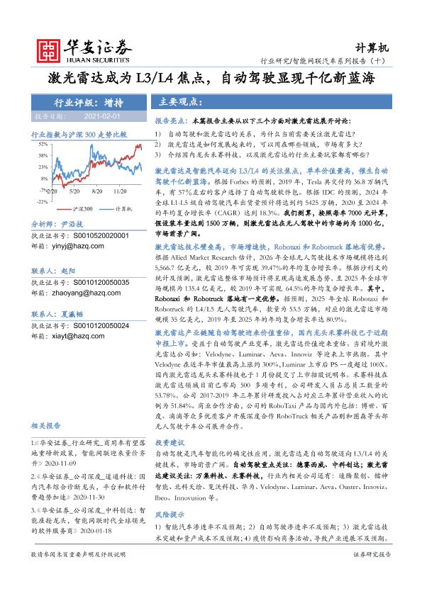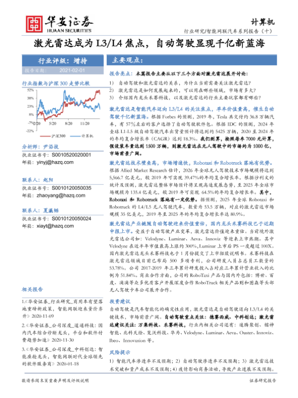 【华安证券】【20210201】激光雷达成为L3 L4焦点,自动驾驶显现千亿新蓝海-42页