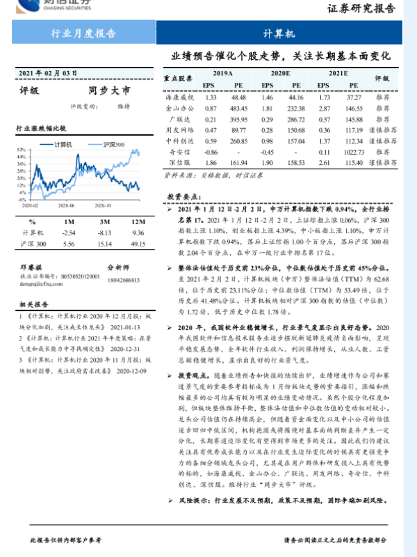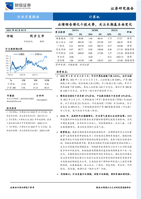 【财信证券】【20210203】计算机行业月度报告:业绩预告催化个股走势,关注长期基本面变化-10页