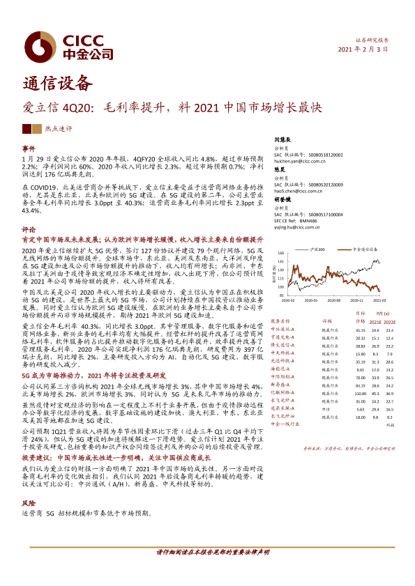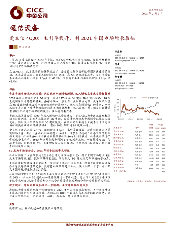 【中金公司】【20210203】爱立信4Q20:毛利率提升,料2021中国市场增长最快-6页