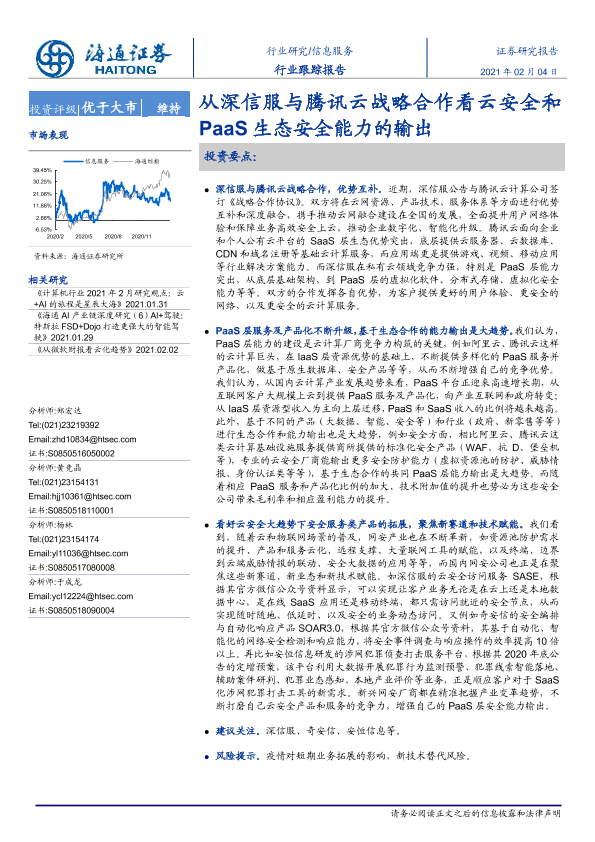 【海通证券】【20210204】从深信服与腾讯云战略合作看云安全和PaaS生态安全能力的输出-2页