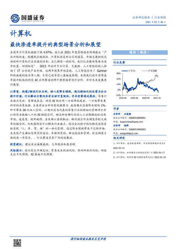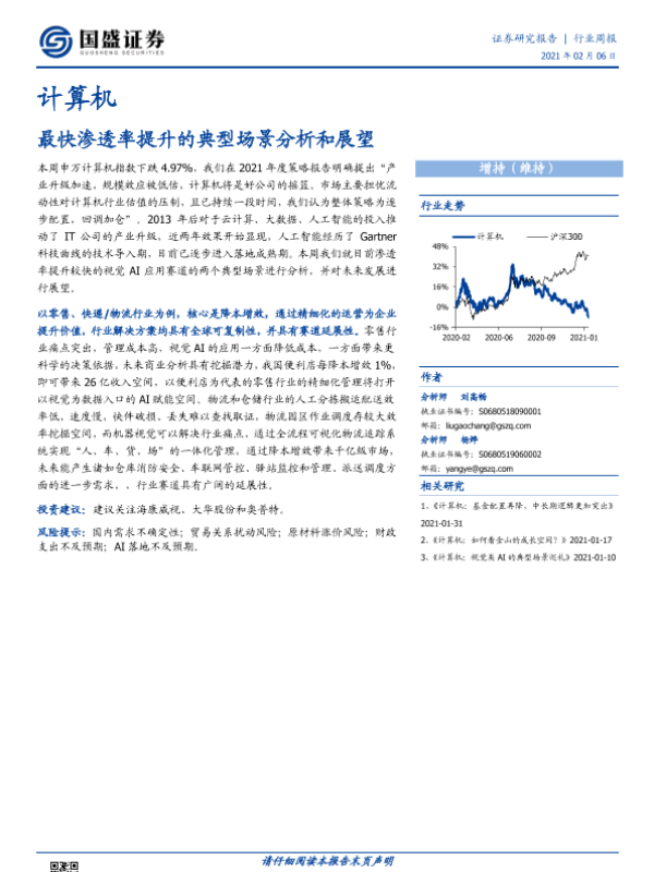 【国盛证券】【20210206】20210206-国盛证券-计算机行业周报:最快渗透率提升的典型场景分析和展望-9页