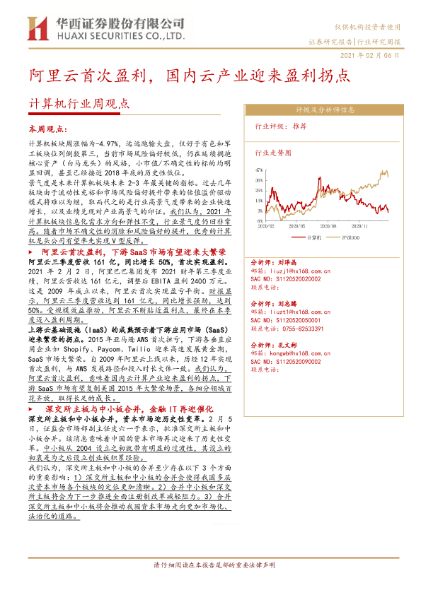 【华西证券】【20210206】20210206-华西证券-计算机行业周观点:阿里云首次盈利,国内云产业迎来盈利拐点-20页