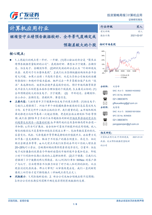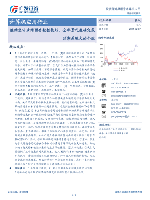 【广发证券】【20210207】20210207-广发证券-计算机应用行业投资策略周报:继续坚守业绩预告数据较好、全年景气度确定或预期差较大的个股-8页