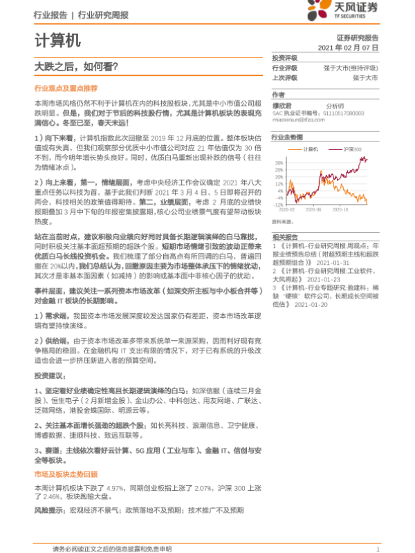 【天风证券】【20210207】20210207-天风证券-计算机行业研究周报:大跌之后,如何看?-6页