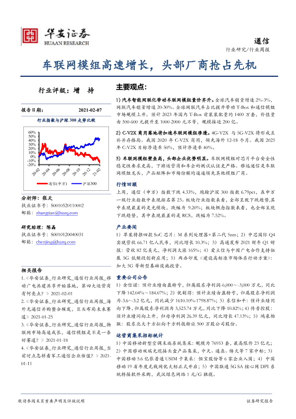 【华安证券】【20210207】通信行业周报:车联网模组高速增长,头部厂商抢占先机-19页