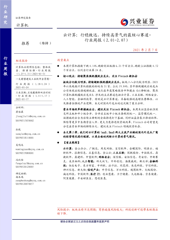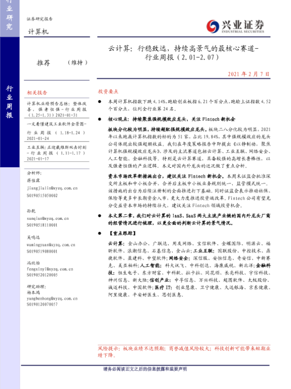 【兴业证券】【20210207】云计算:行稳致远,持续高景气的最核心赛道-行业周报(2.01-2.07)-28页
