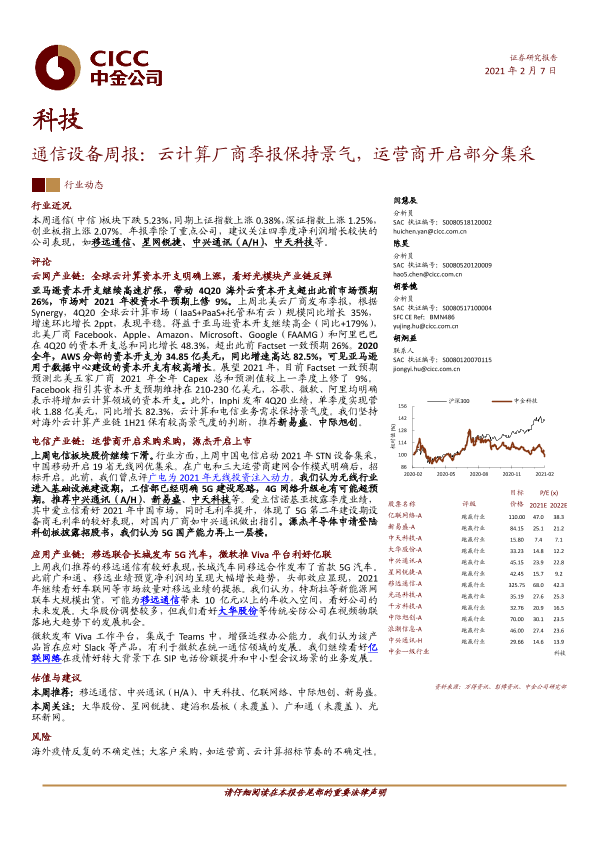【中金公司】【20210207】通信设备周报:云计算厂商季报保持景气,运营商开启部分集采-14页