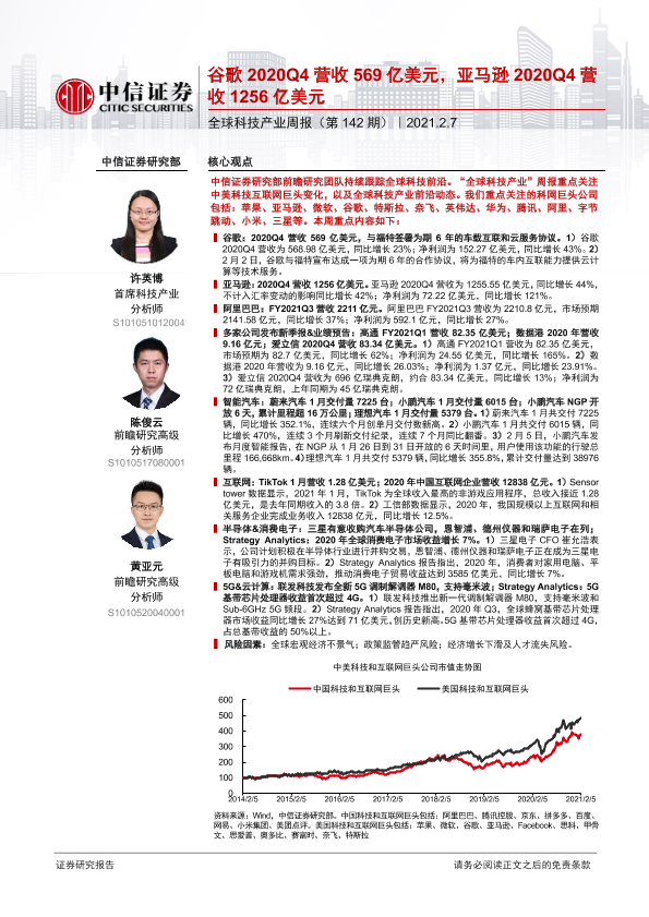 【中信证券】【20210207】全球科技产业周报(第142期):谷歌2020Q4营收569亿美元,亚马逊2020Q4营收1256亿美元-20页