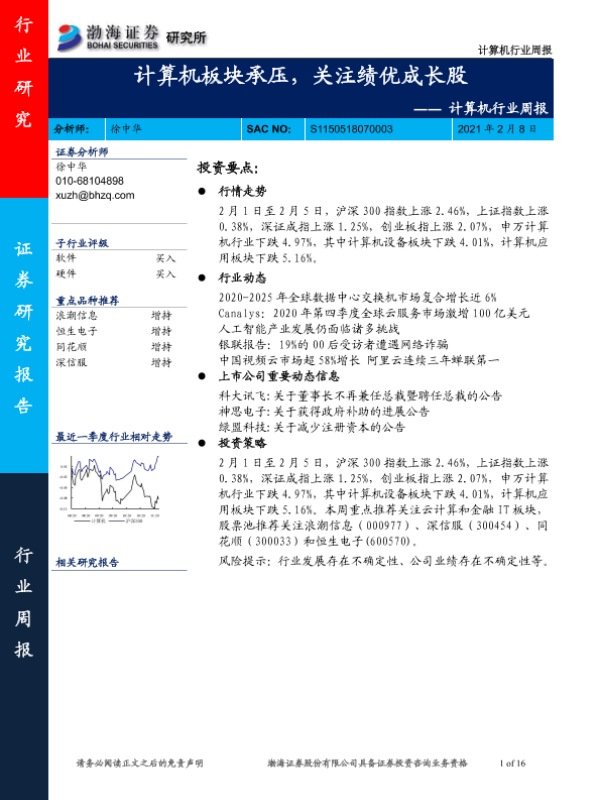 【渤海证券】【20210208】20210208-渤海证券-计算机行业周报:计算机板块承压,关注绩优成长股-16页