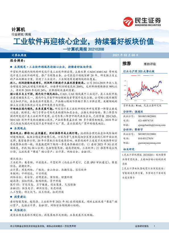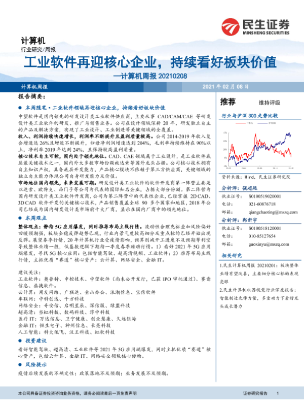 【民生证券】【20210208】20210208-民生证券-计算机周报:工业软件再迎核心企业,持续看好板块价值-20页