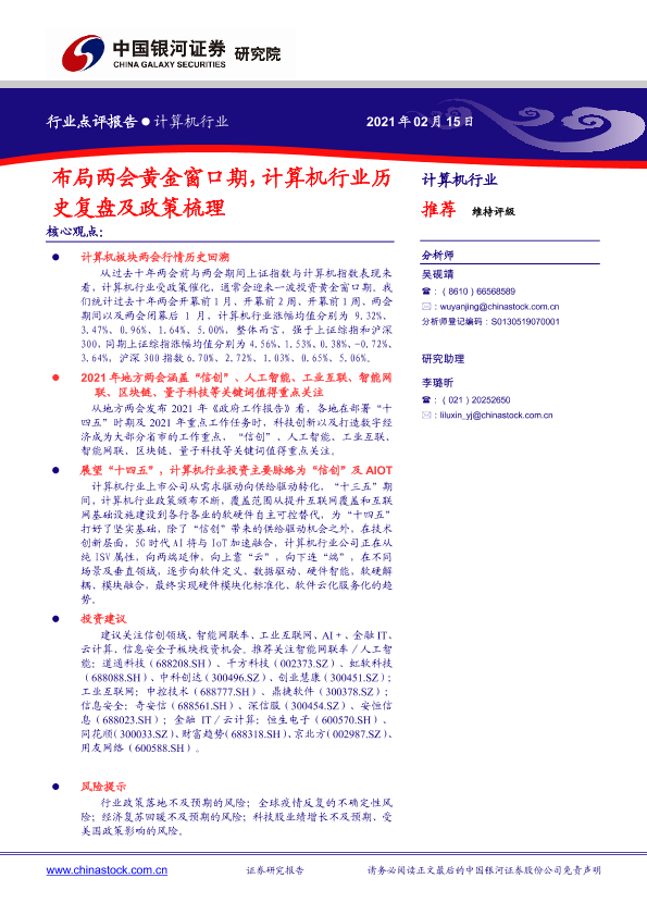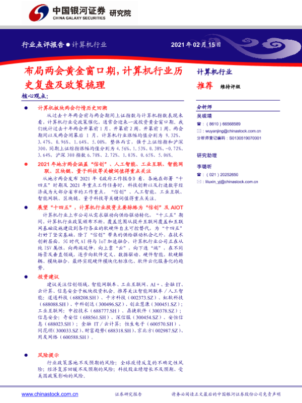 【银河证券】【20210215】计算机行业:布局两会黄金窗口期,计算机行业历史复盘及政策梳理-10页
