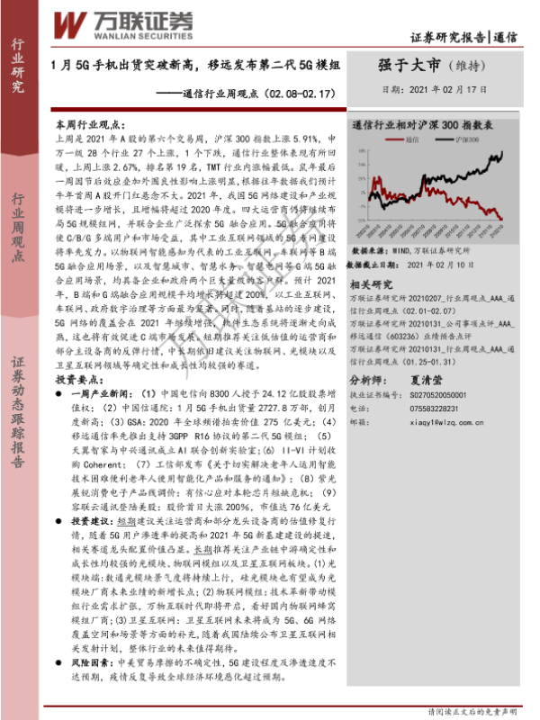 【万联证券】【20210217】通信行业周观点:1月5G手机出货突破新高,移远发布第二代5G模组-13页