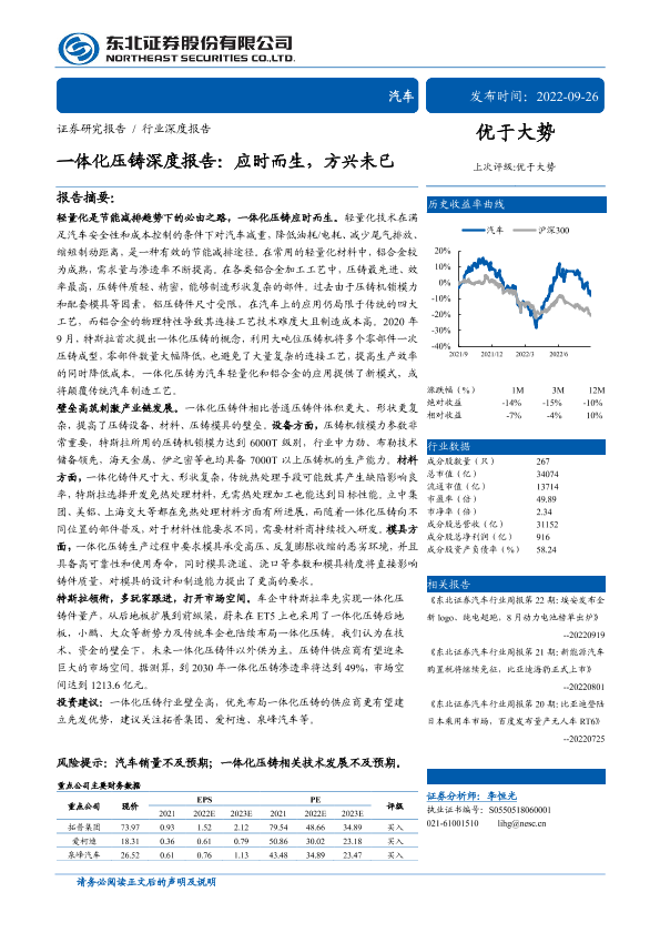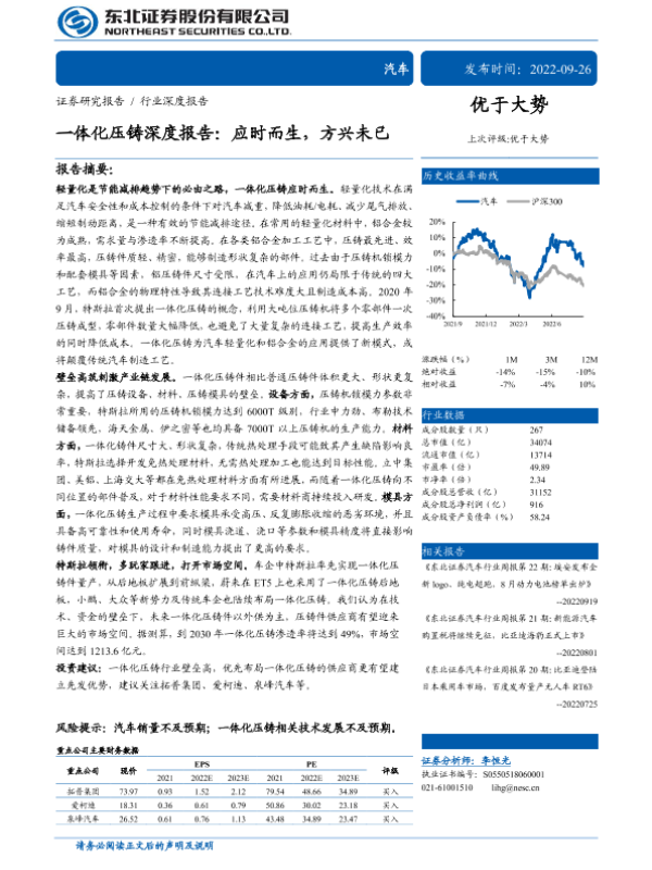 【东北证券】【20220926】汽车行业一体化压铸深度报告:应时而生,方兴未已-29页