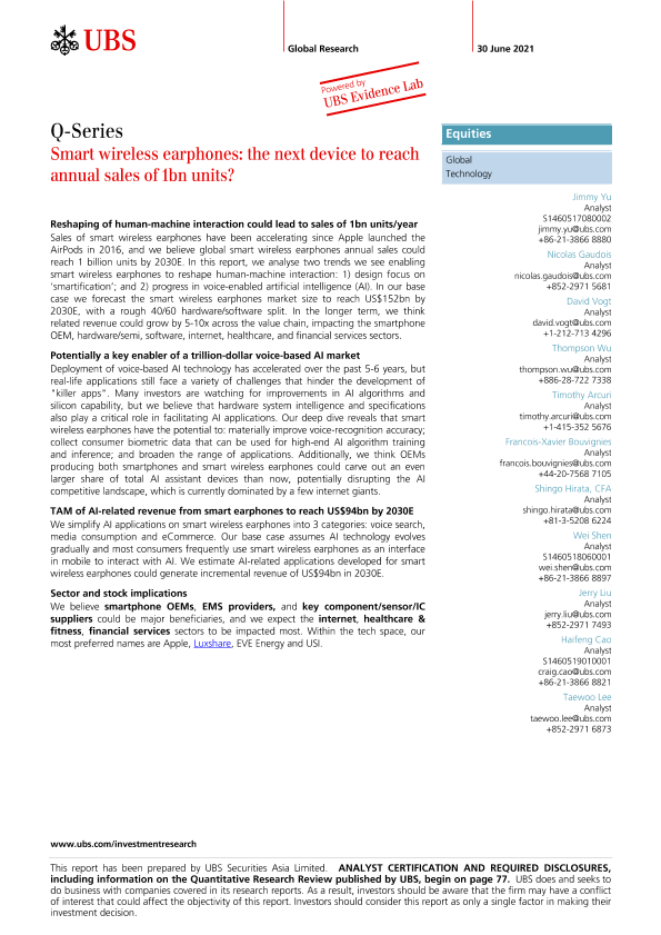 【UBS Securities Asia Limited】【20210630】瑞银-全球科技行业-智能无线耳机:下一款年销量将达到10亿部的设备是什么-88页