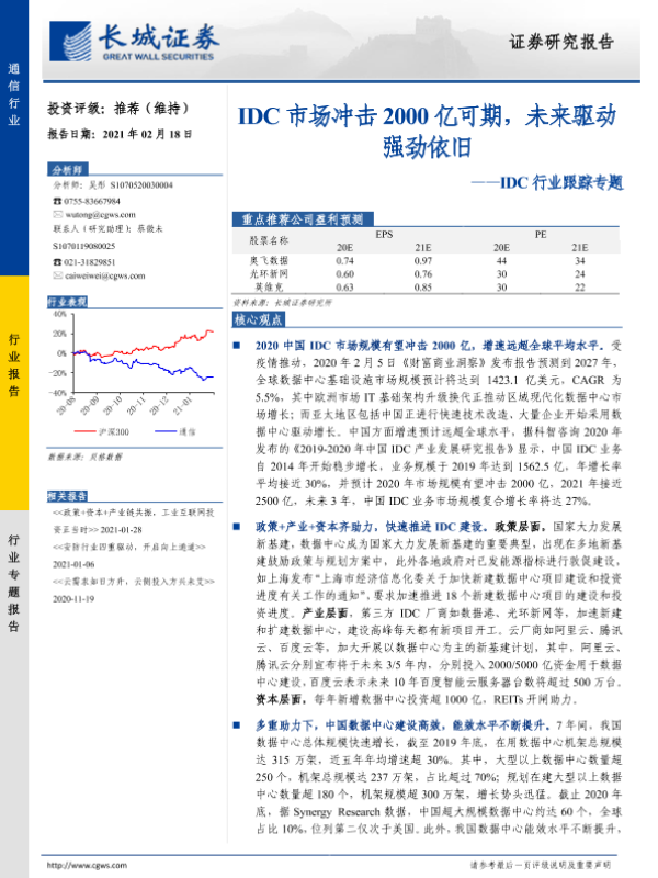 【长城证券】【20210218】20210218-长城证券-IDC行业跟踪专题:IDC市场冲击2000亿可期,未来驱动强劲依旧-13页