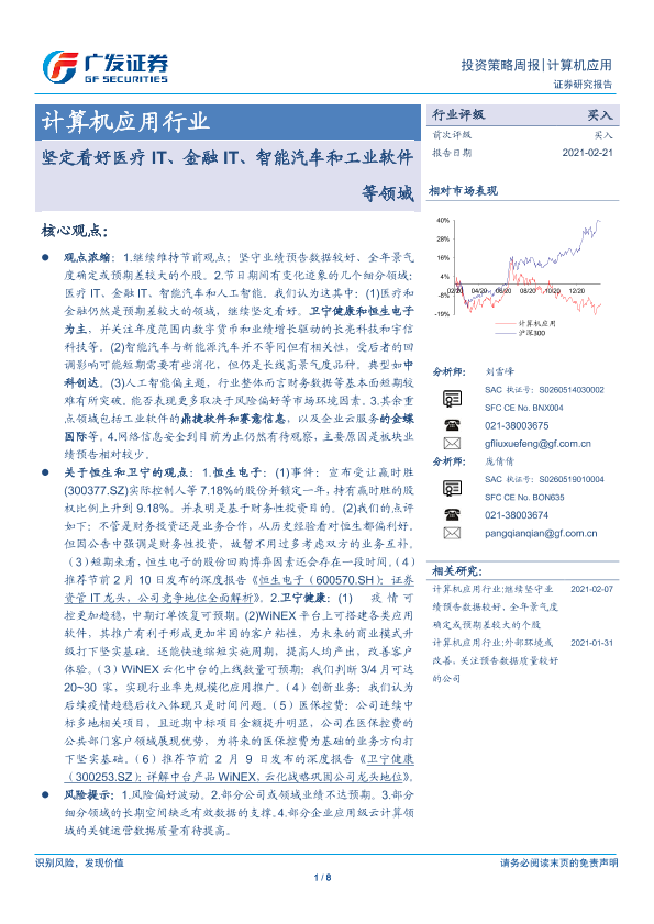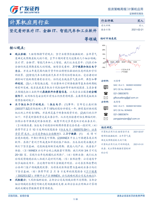 【广发证券】【20210221】20210221-广发证券-计算机应用行业投资策略周报:坚定看好医疗IT、金融IT、智能汽车和工业软件等领域-8页