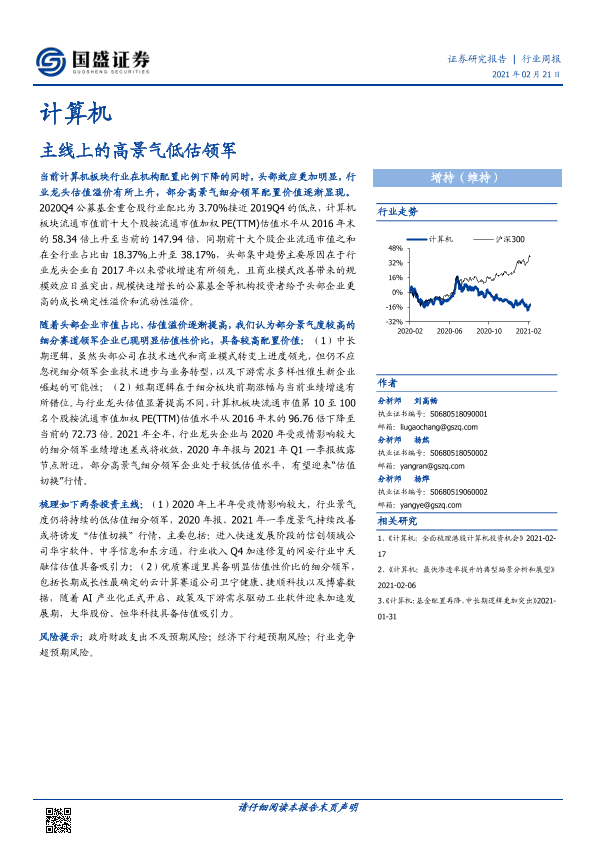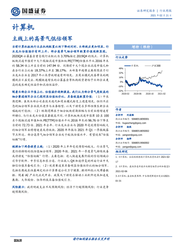 【国盛证券】【20210221】计算机行业周报:主线上的高景气低估领军-18页