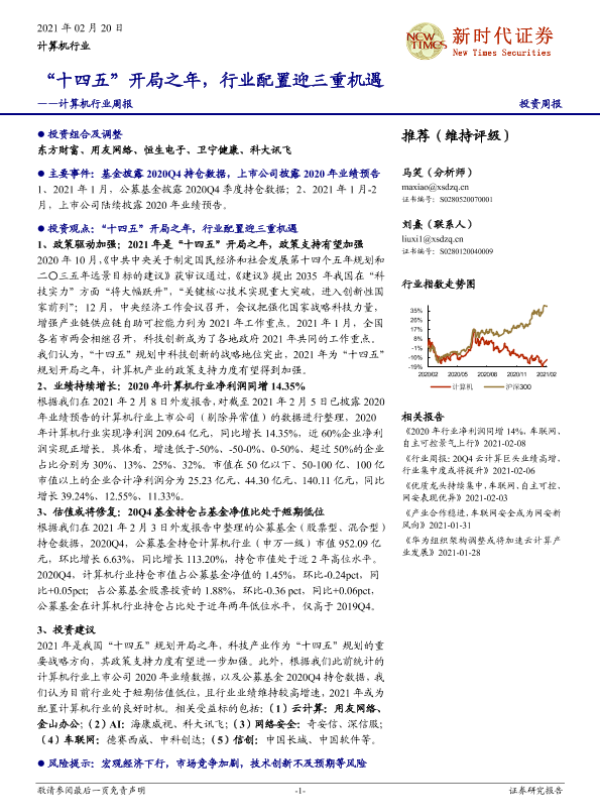 【新时代证券】【20210220】“十四五”开局之年,行业配置迎三重机遇——计算机行业周报-20页