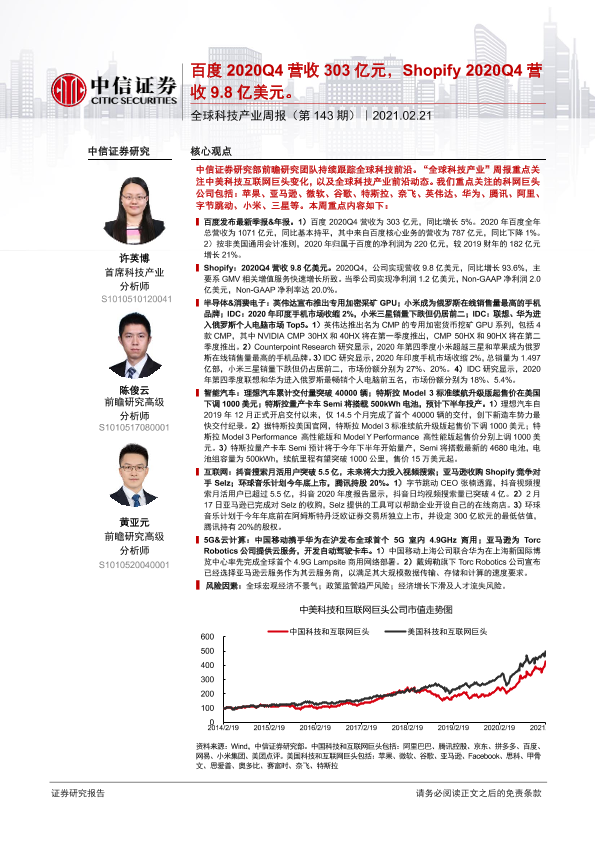 【中信证券】【20210221】全球科技产业周报(第143期):百度2020Q4营收303亿元,Shopify2020Q4营收9.8亿美元-14页