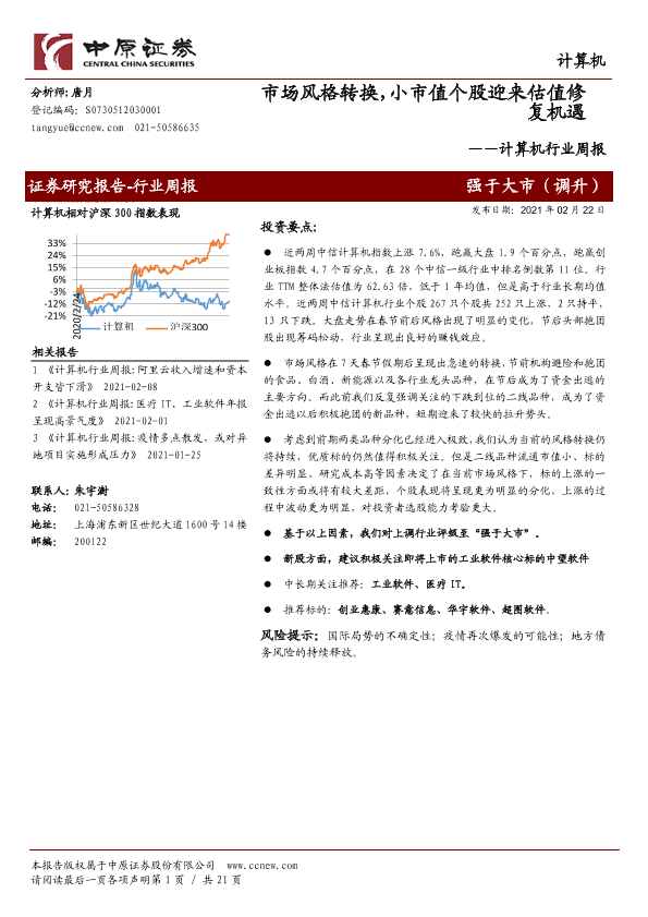 【中原证券】【20210222】计算机行业周报:市场风格转换,小市值个股迎来估值修复机遇-21页