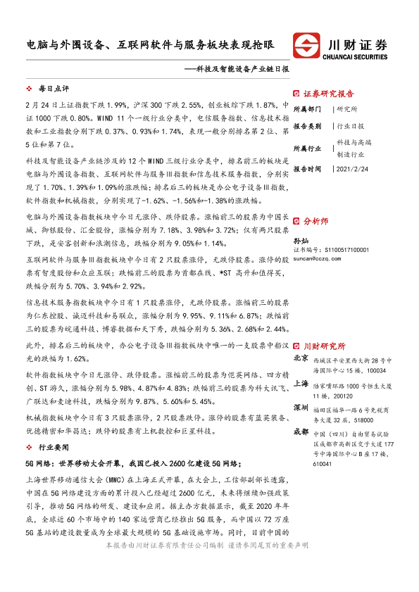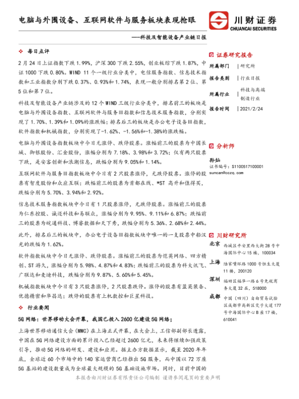 【川财证券】【20210224】科技及智能设备产业链日报:电脑与外围设备、互联网软件与服务板块表现抢眼-3页