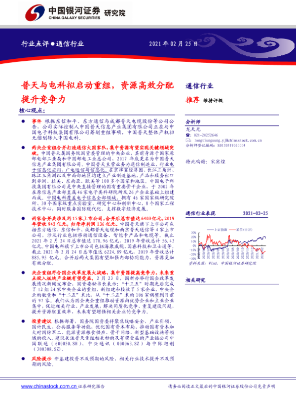 【银河证券】【20210225】普天与电科拟启动重组,资源高效分配提升竞争力-2页