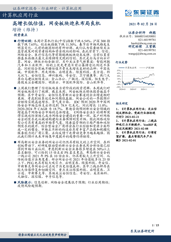 【东吴证券】【20210228】计算机应用行业:高增长低估值,网安板块迎来布局良机-15页