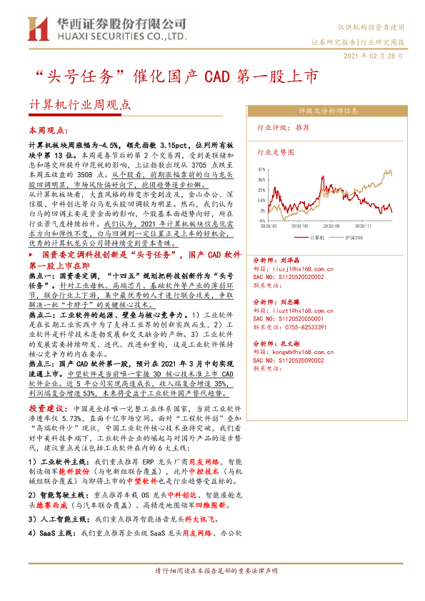 【华西证券】【20210228】计算机行业周观点:“头号任务”催化国产CAD第一股上市-29页
