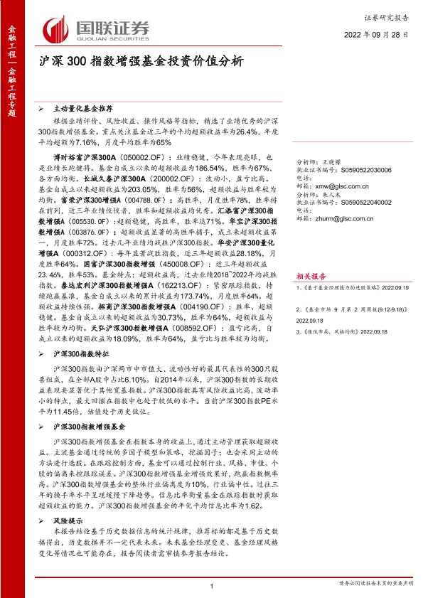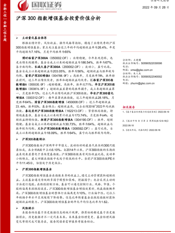 【国联证券】【20220928】沪深300指数增强基金投资价值分析-49页