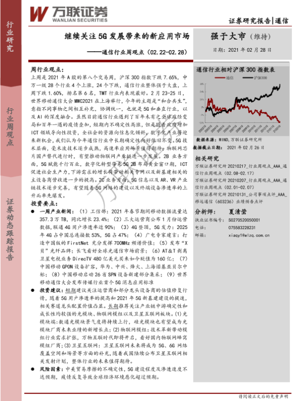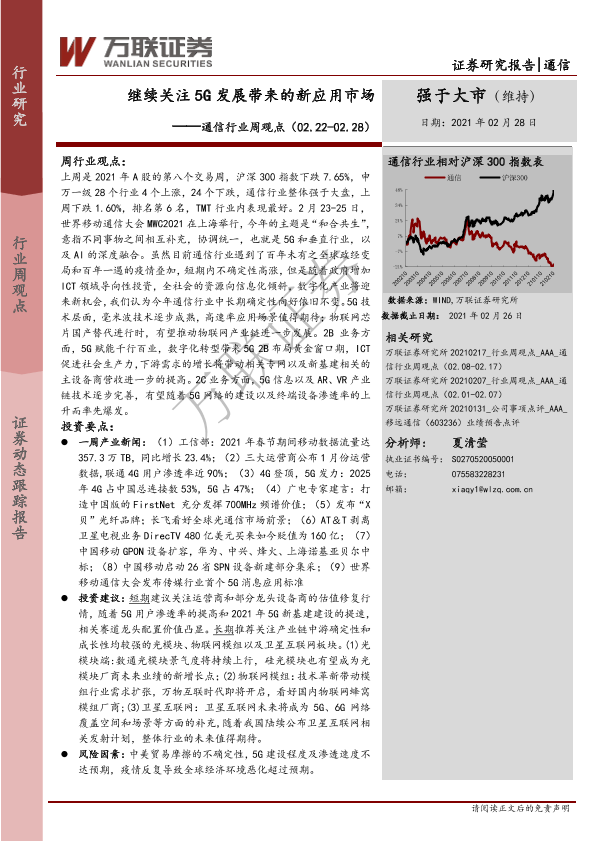 【万联证券】【20210228】20210228-万联证券-通信行业周观点:继续关注5G发展带来的新应用市场-13页