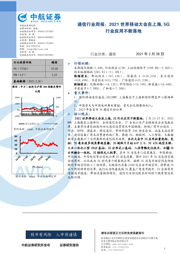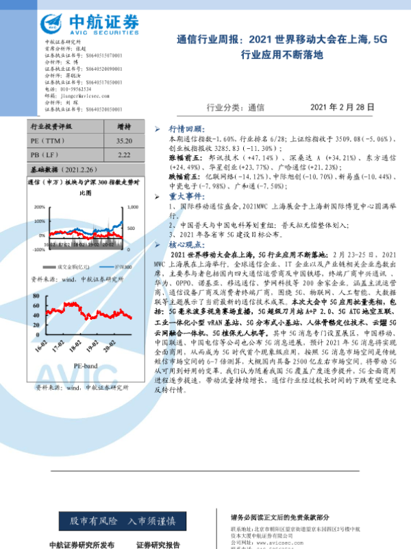 【中航证券】【20210228】2021世界移动大会在上海,5G行业应用不断落地-4页