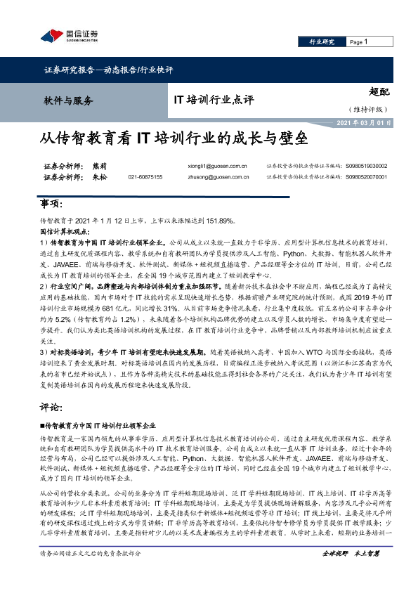 【国信证券】【20210301】从传智教育看IT培训行业的成长与壁垒-8页