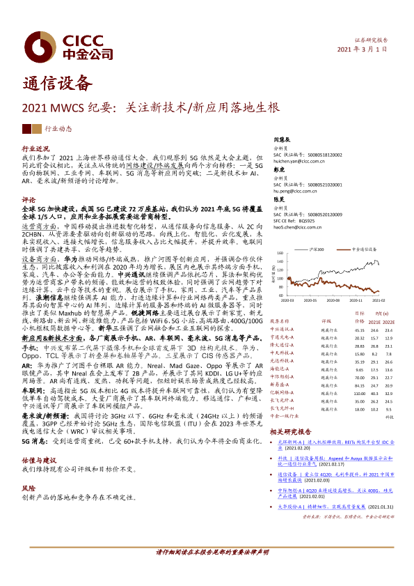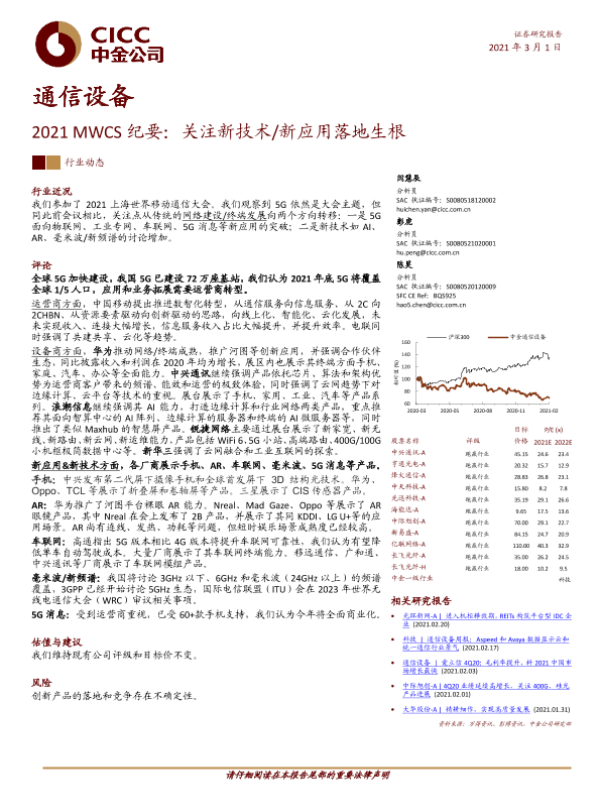 【中金公司】【20210301】2021 MWCS纪要:关注新技术 新应用落地生根-10页