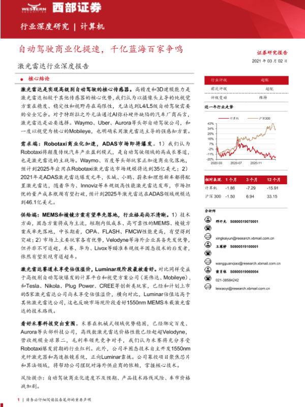 【西部证券】【20210302】激光雷达行业深度报告:自动驾驶商业化提速,千亿蓝海百家争鸣-53页