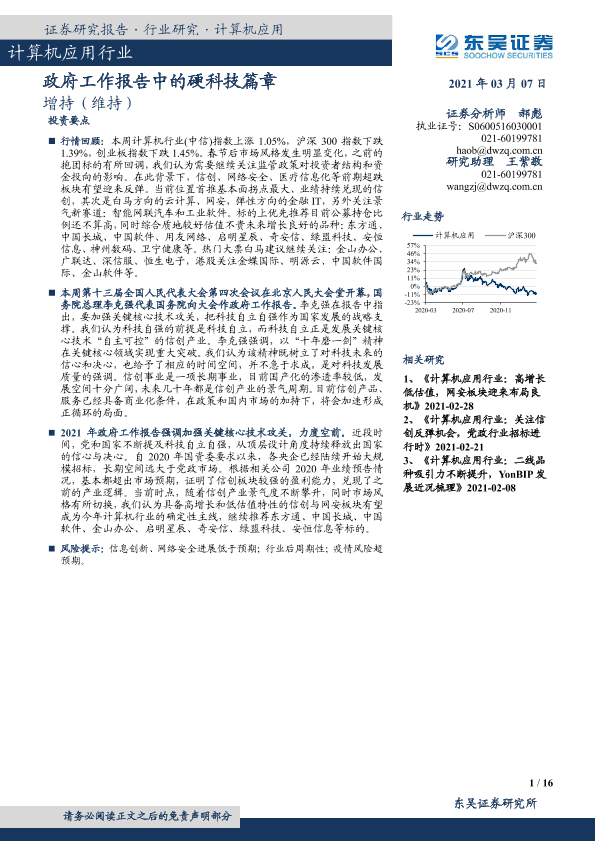 【东吴证券】【20210307】计算机应用行业:政府工作报告中的硬科技篇章-16页