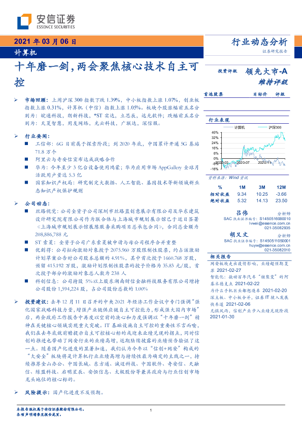 【安信证券】【20210306】20210306-安信证券-计算机行业动态分析:十年磨一剑,两会聚焦核心技术自主可控-14页