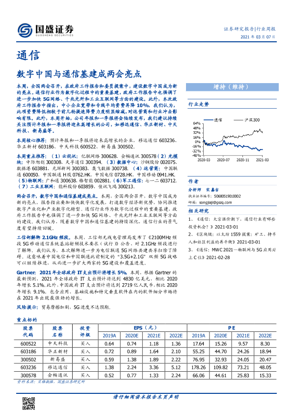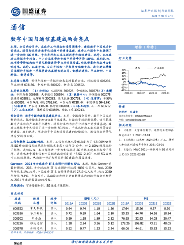 【国盛证券】【20210307】通信行业周报:数字中国与通信基建成两会亮点-11页