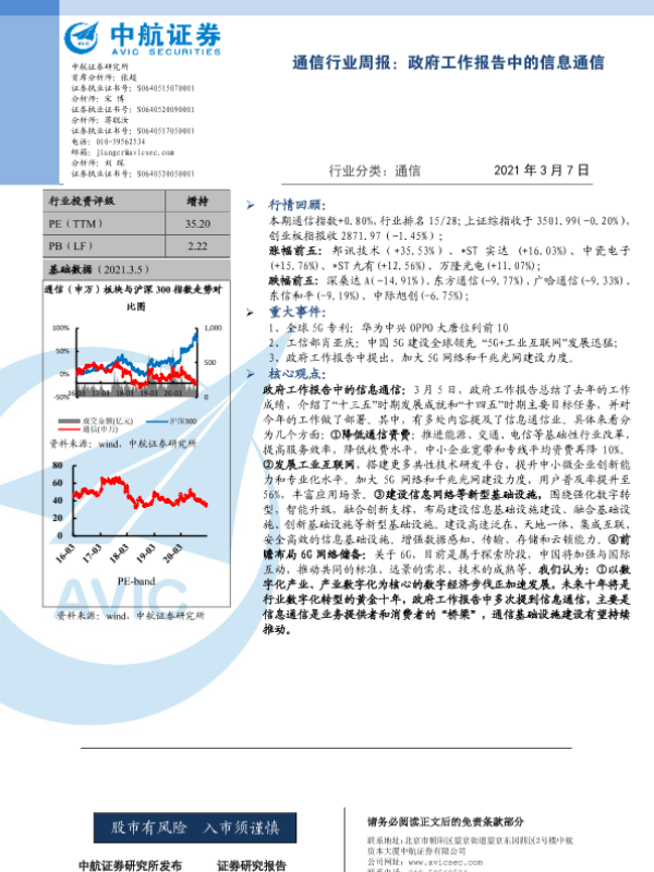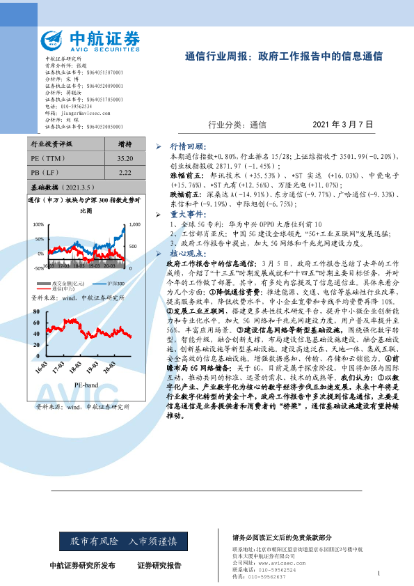 【中航证券】【20210307】通信行业周报:政府工作报告中的信息通信-3页