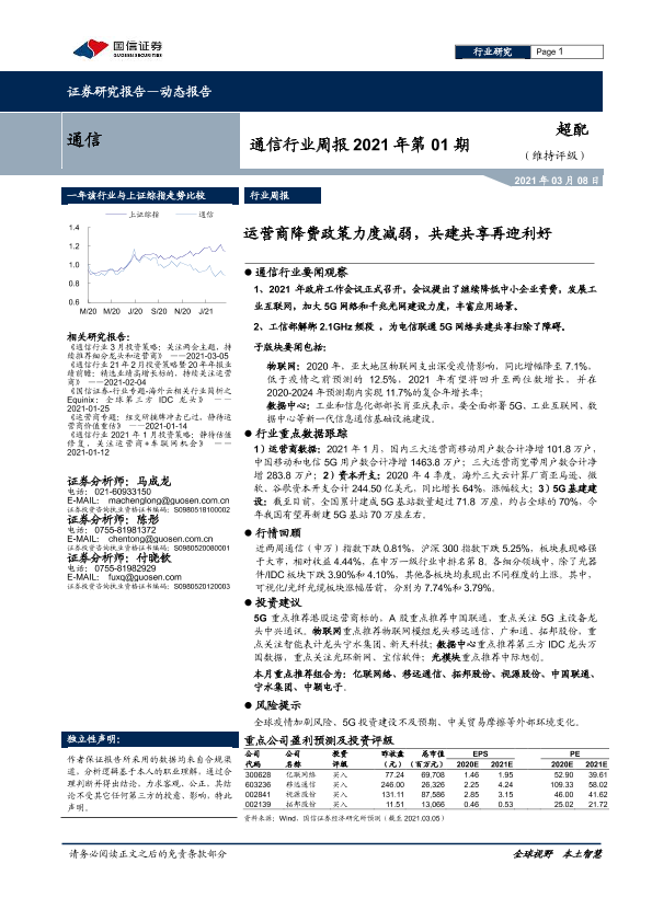 【国信证券】【20210308】通信行业周报2021年第01期:运营商降费政策力度减弱,共建共享再迎利好-11页