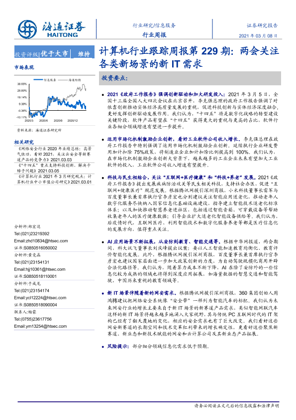 【海通证券】【20210308】计算机行业跟踪周报第229期:两会关注各类新场景的新IT需求-6页