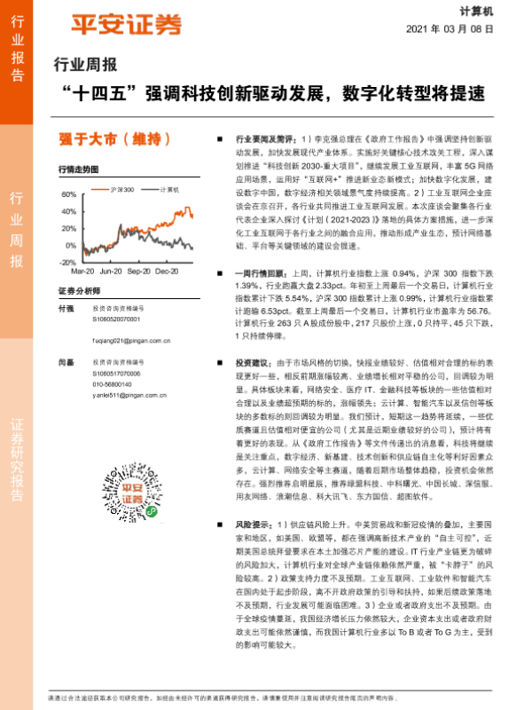 【平安证券】【20210308】计算机行业周报:“十四五”强调科技创新驱动发展,数字化转型将提速-5页