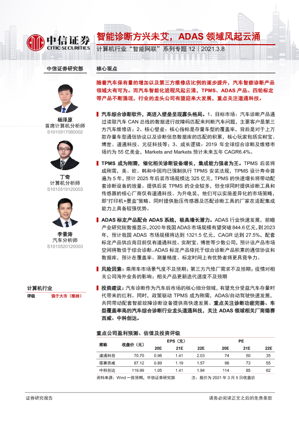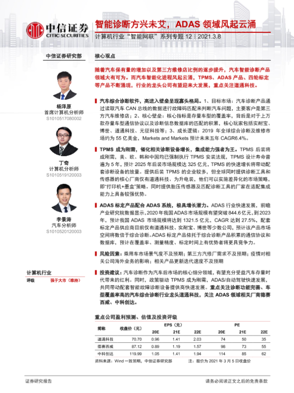 【中信证券】【20210308】计算机行业“智能网联”系列专题12:智能诊断方兴未艾,ADAS领域风起云涌-31页