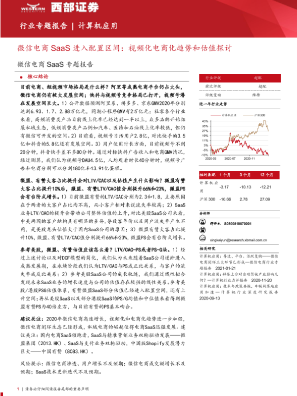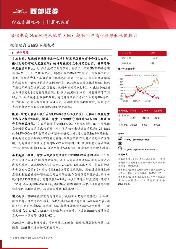 【西部证券】【20210309】微信电商SaaS进入配置区间:视频化电商化趋势和估值探讨-18页
