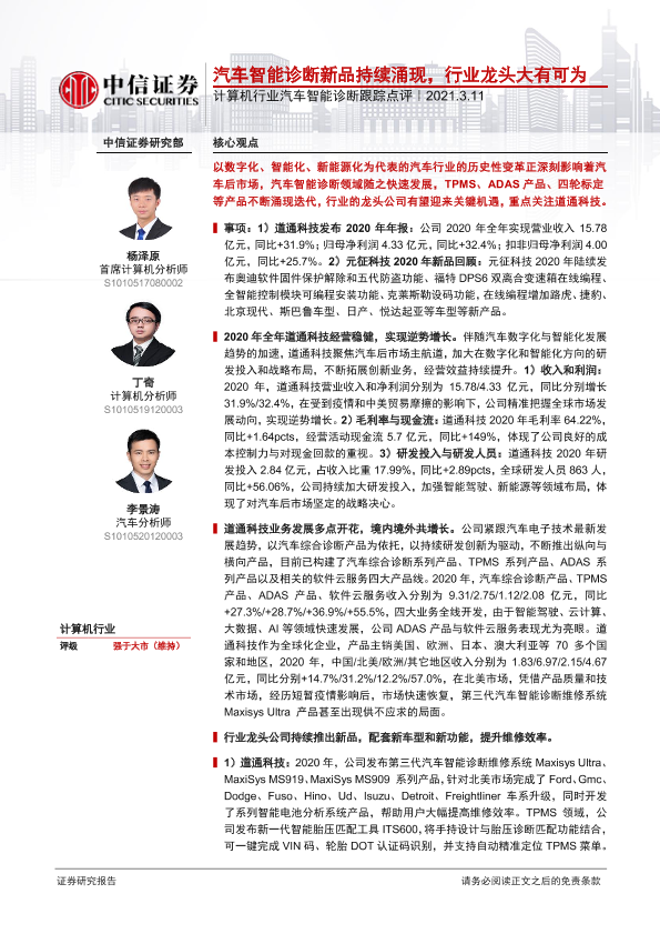 【中信证券】【20210311】计算机行业汽车智能诊断跟踪点评:汽车智能诊断新品持续涌现,行业龙头大有可为-3页