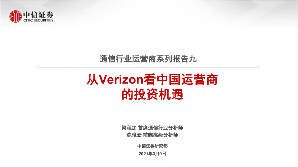 【中信证券】【20210309】通信行业运营商系列报告九:从Verizon看中国运营商的投资机遇-36页