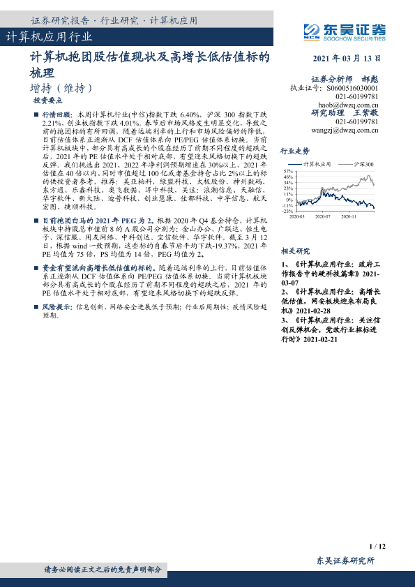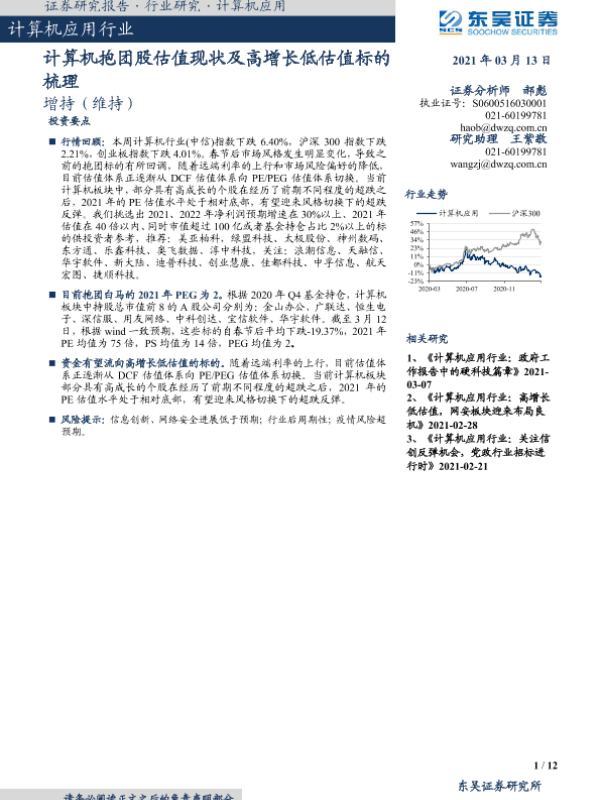 【东吴证券】【20210313】计算机应用行业:计算机抱团股估值现状及高增长低估值标的梳理-12页