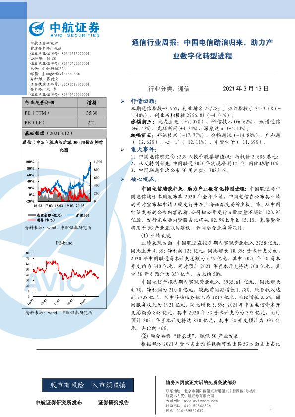 【中航证券】【20210313】通信行业周报:中国电信踏浪归来,助力产业数字化转型进程-3页