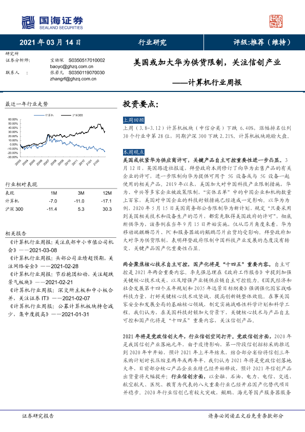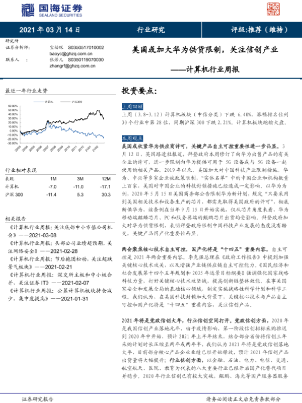 【国海证券】【20210314】20210314-国海证券-计算机行业周报:美国或加大华为供货限制,关注信创产业-10页